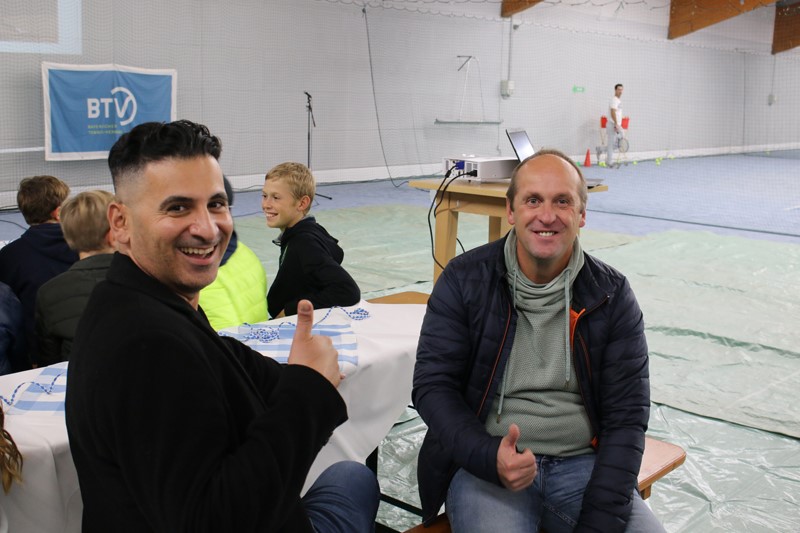 Schon am Freitag war bei guter Stimmung und großartigem Essen des TCE-Wirtsteams um Taskeen und Waseem ein tolles Event-Opening angelaufen, mit Live-Auslosung und Verteilung von Teilnehmershirts für die anwesenden Jugendlichen. Mal ganz was anderes als normal – und auch am Samstag beim Spielen gab es einige Besonderheiten: Gruppenphase mit 3 Spielen pro Person und einem ausgespielten dritten Satz. Niklas Klein, der Dauerläufer des Turniers, stand alleine am Samstag knapp 5 Stunden in seinen beiden Matches auf dem Platz.