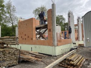 Los ging es mit den Beton-Innenwänden, rund um Ostern sollen dann die Mauerwerke der Außenwände ebenfalls erstellt werden