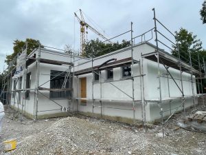 Die Bodenplatte wurde letztlich zügig gegossen und die ersten größeren “sichtbaren” Ergebnisse des Bauvorhabens waren fertiggestellt